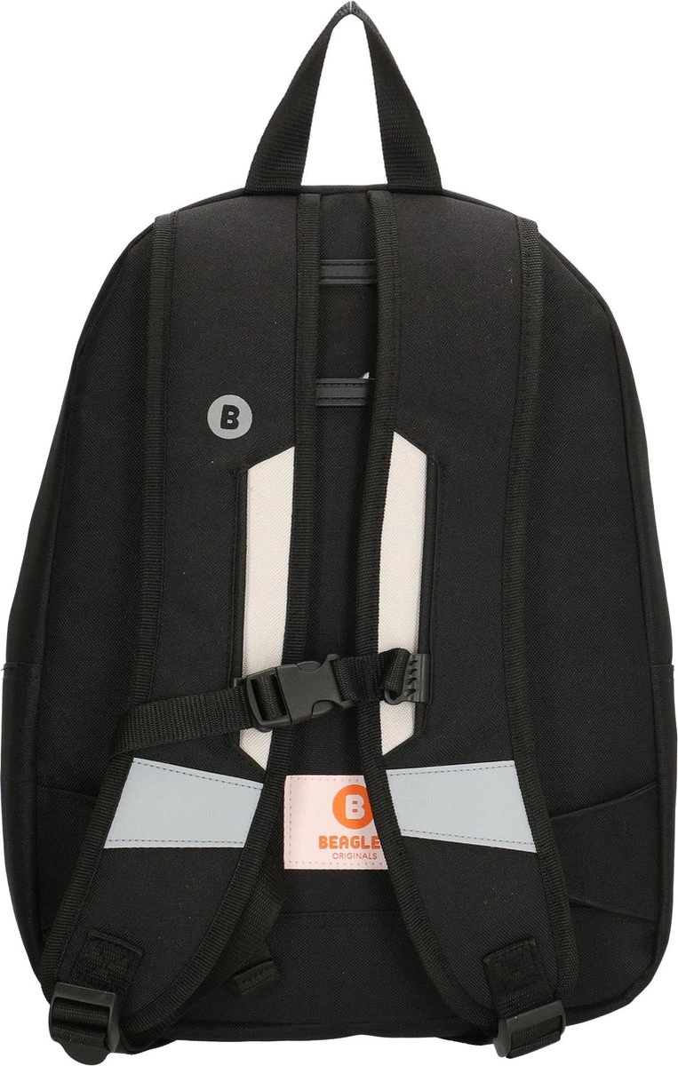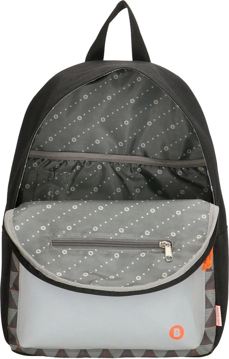 Stoere rugzak van Beagles Originals in zwart met grijze driehoeken en oranje accenten!