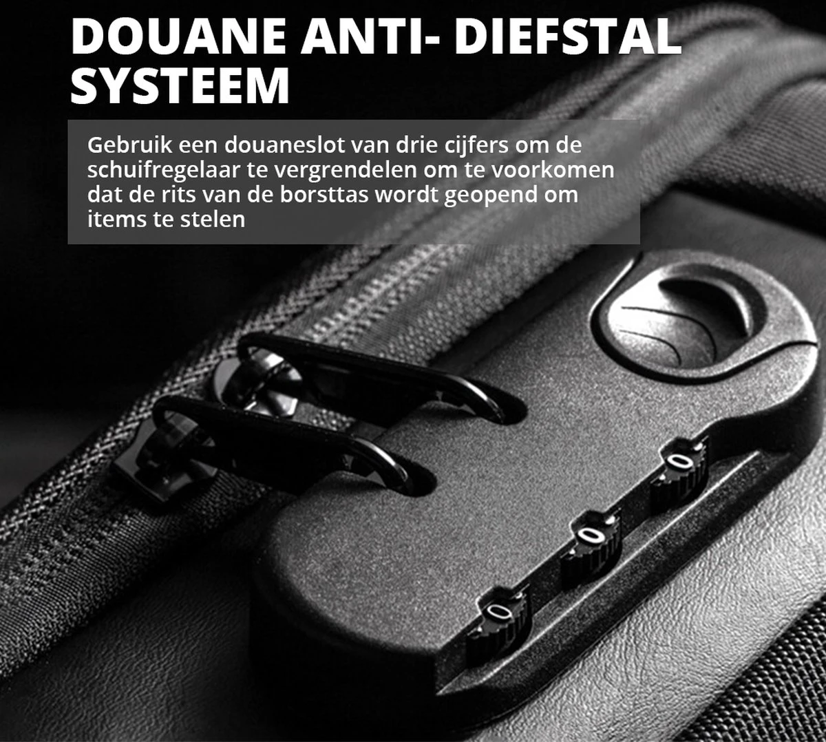Met TSA-slot – Om de rugzak nog veiliger te maken, heeft elke rugzak een cijferslot dat aan de bovenkant van de tas is bevestigd. Alle tassen worden geleverd met een handleiding voor het slot.