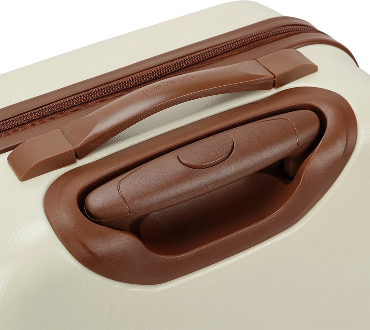 De Decent Retro serie is een betrouwbare koffer en je ideale reispartner. De schaal van de koffer is gemaakt van 100% polycarbonaat. Behalve dat je hiermee een prachtige licht glimmende afwerking krijgt, is de koffer ook nog eens super sterk en goed beschermd tegen schade. Polycarbonaat materiaal wordt in het algemeen gezien als een van de sterkste materialen om een koffer van te produceren. Dankzij de vier 360-graden draaiende dubbele wielen, een prettig handvat en een in hoogte verstelbare trekstang ben je van alle gemakken voorzien. Het luxe interieur bevat naast diverse rits vakken ook een tussenschot met rits en gekruiste inpakriemen. De koffer sluit je veilig met het TSA-combinatieslot, welke in de bruine kleur is verwerkt aan de zijkant van de koffer.