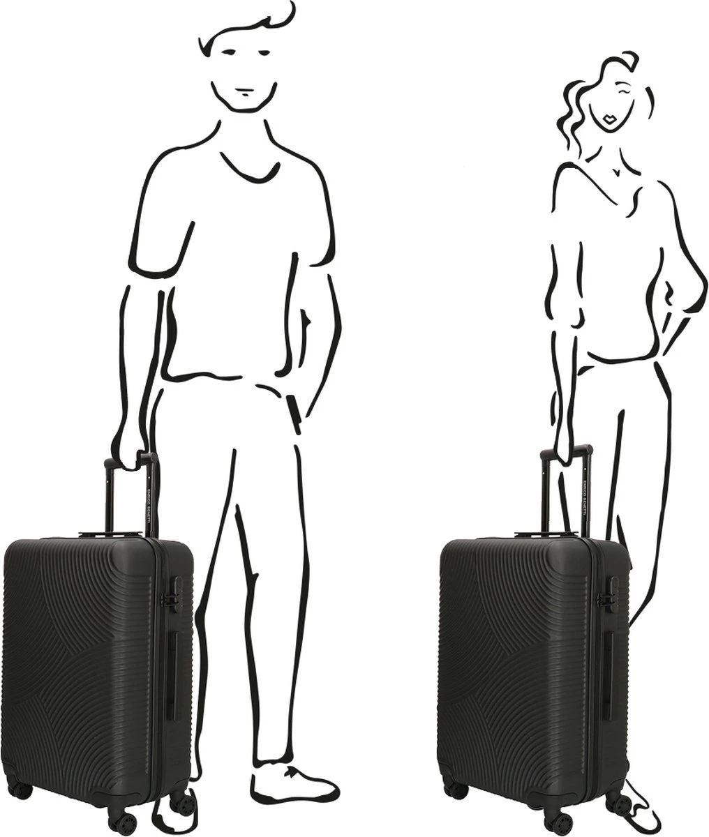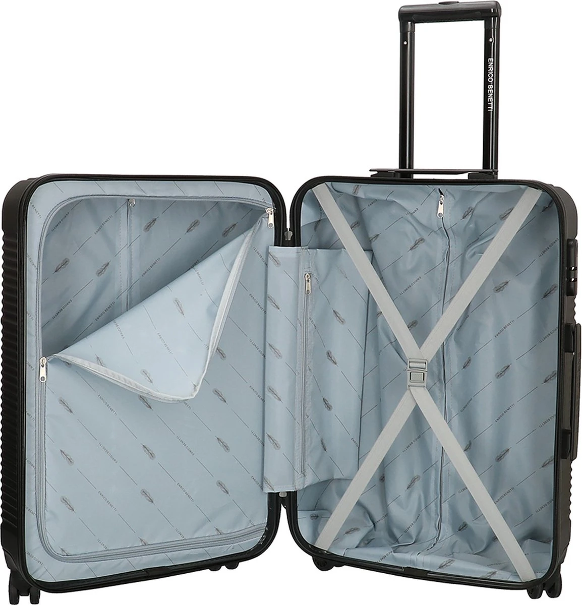 De Enrico Benetti koffer heeft een dubbele trekstang en een handvat aan de boven- en zijkant. Daarnaast heeft de koffer vier wielen die 360 graden kunnen draaien, wat er voor zorgt dat de koffer soepel met je mee rijdt. De koffer is voorzien van een cijferslot en naamlabel.