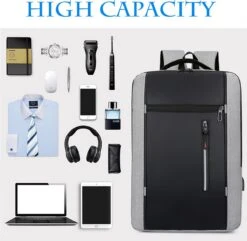 Merkloos Rugzak – Laptoprugzak 15,6 Inch – Schoolrugzak Dagrugzak – Kerstmis – Kerstfeest – Christmas Gift – Rugzak Dames Heren – Waterdichte Nylon Laptopbagagetablet – Met Usb Oplaadstation – Voor School Reizen Multifunctioneel – Grijs