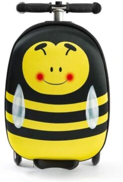 Bumpie Bij is met haar gele kleur een vrolijke en opvallende rolkoffer. Bumpie is altijd opzoek naar honing. Deze bezige bij kan niet vliegen en daarom rolt ze. Klik op het pedaal, klap de step uit en de zoektocht naar honing kan beginnen. Deze bezige bij houdt al je spullen veilig. Bij het steppen is Bumpie een zachte bumper en bij het reizen een betrouwbare kameraad. Van lunchtrommels tot hoofdkussentjes: Bumpie de Bij eet ze op en houdt ze veilig. Avontuur in de avond? Bumpie heeft lampjes in haar pootjes. Deze lichten op en zorgen voor een veilige reis. Bumpie de Bij kan 21 liter honing opeten en bewaren.