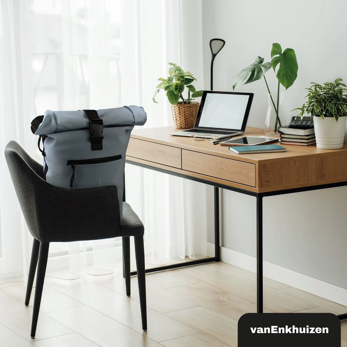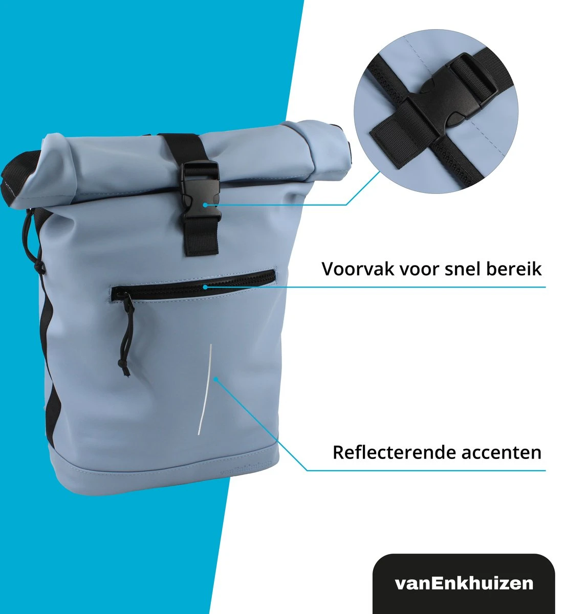 Neem je spullen overal mee naartoe in deze stijlvolle van Enkhuizen Rolltop Rugzak voor dames en heren. Maak de rugtas groter en kleiner door de sluiting op of uit te rollen. Het laptopvak biedt ruimte aan een 15,6 inch laptop, die droog blijft via het waterafstotende Tarpaulin. Houdt je spullen warm of koud dankzij de thermo binnenzijde en gebruik de ritsvakken om kleine spullen weg te stoppen. Veilig de weg op in het donker is geen probleem door de reflectie strip op de rugzak. De gewatteerde schouderbanden zorgen voor ideaal draagcomfort, waardoor deze handige tas onmisbaar wordt.