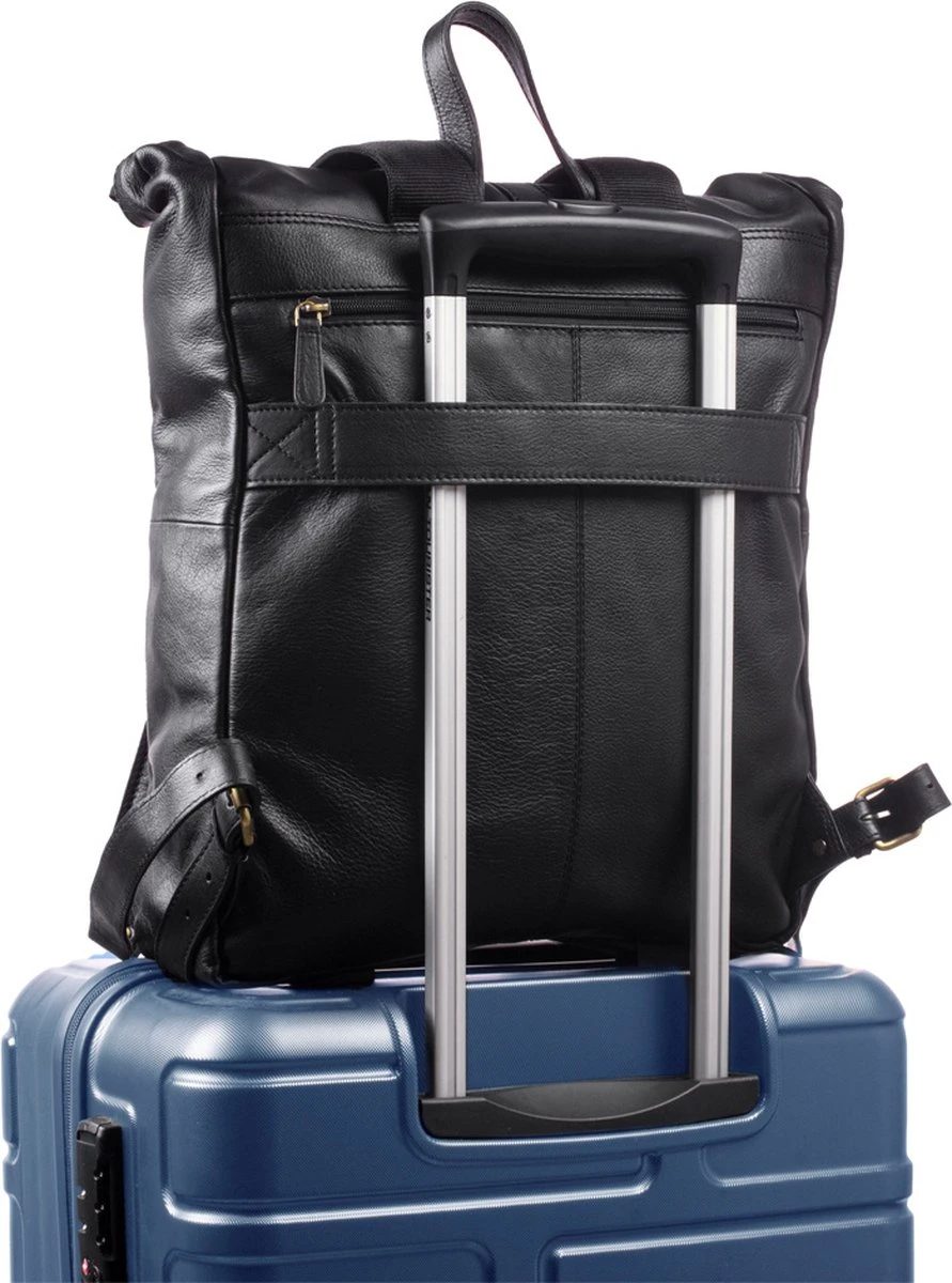 Deze laptop rugzak kan met de in lengte verstelbare schouderbanden comfortabel op de rug meegedragen worden. Ook zit er aan de achterkant een stevige trolleylus, zodat de tas als bagage over een rolkoffer of trolley meegenomen kan worden.